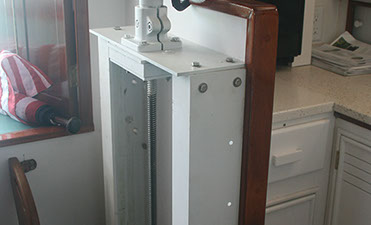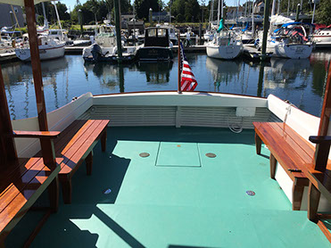 The wheelhouse helm station and cockpit are keeping with the original Pilar for offshore sport fishing including the original 1934 “flying bridge” design by Hemingway with full controls and steering. The double bench seating in the wheelhouse can also be used as berths and are removable. The original Pilar was powered by a 75 hp Chrysler gas engine with a 40 hp Lycoming “trolling engine” The new Pilar has twin 75 hp diesels with new transmissions with easy accessible location under the wheelhouse sole.